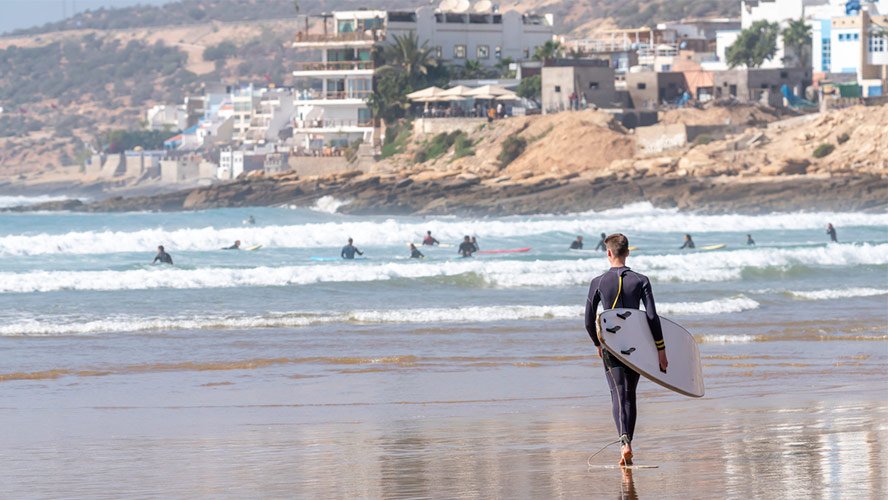 A short transfer brings you to the prime surf spot on Taghazoute Beach.